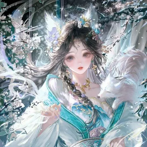 Hình đại diện cute thiếu nữ băng giá, ánh sáng mềm, tóc bay nhẹ, tông xanh lạnh trong veo