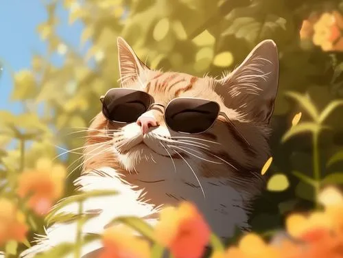 Ảnh mèo tuxedo chibi đeo kính râm, thần thái “cool”, hợp hình nền cho người thích chất riêng.