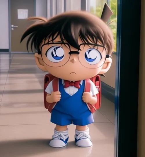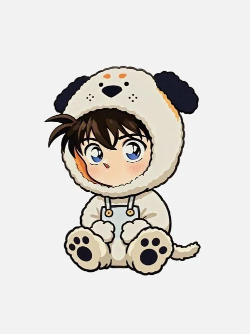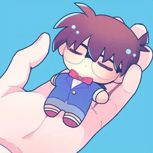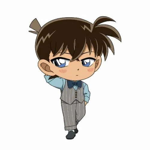 Nhiều khi mình thấy Conan bản gốc hơi căng quá, còn Conan chibi thì kiểu nhìn một cái là muốn cười. Vẫn đủ dấu hiệu nhận diện như kính tròn, nơ đỏ, vest xanh, nhưng nét vẽ được làm tròn trịa, thân hình mũm mĩm, tay chân ngắn nên cảm giác dễ thương hơn hẳn. Mấy tấm kiểu này để làm nhãn dán chat hay hình nền điện thoại đúng là “cứu mood” nhanh.