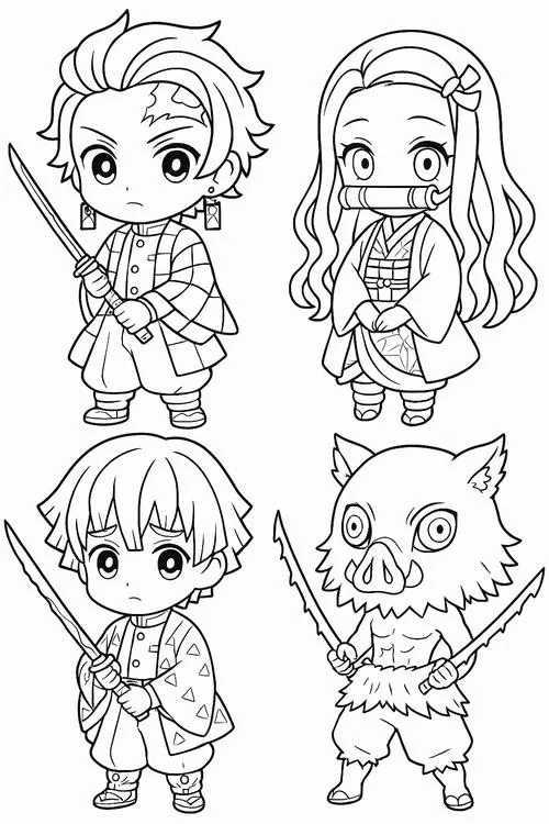 Tô màu Thanh Gươm Diệt Quỷ phong cách chibi và cổ điển