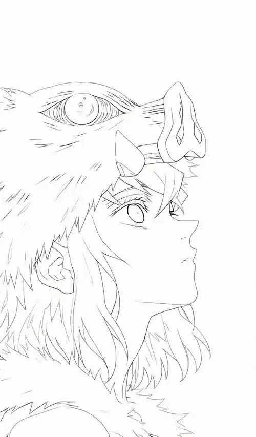 Góc nghiêng mặt nạ lợn rừng của Inosuke, nét chì mảnh, nhìn sắc và bí ẩn