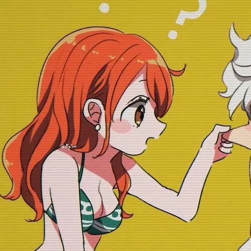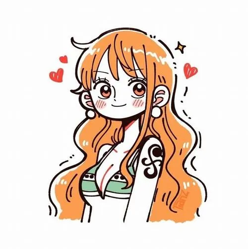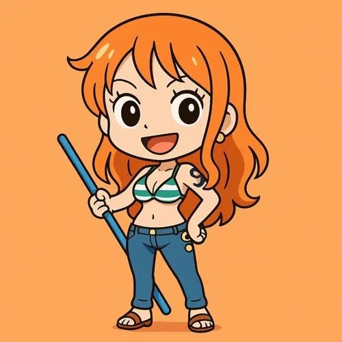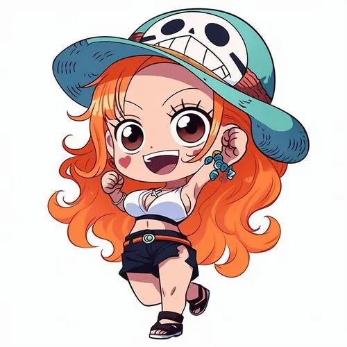 Hình Nami chibi tóc cam đội mũ Law, mắt to tinh nghịch, màu tươi hợp ảnh đại diện