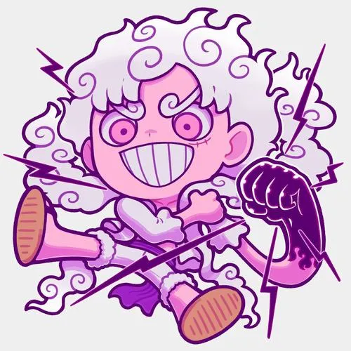 Ảnh Luffy Gear 5 chibi nét tím, biểu cảm phóng đại, kiểu sticker hợp dán khung chat
