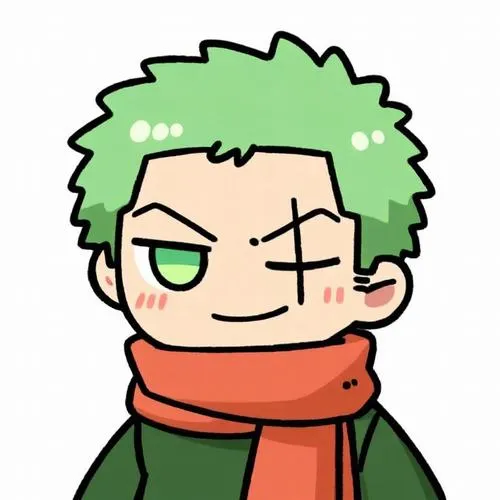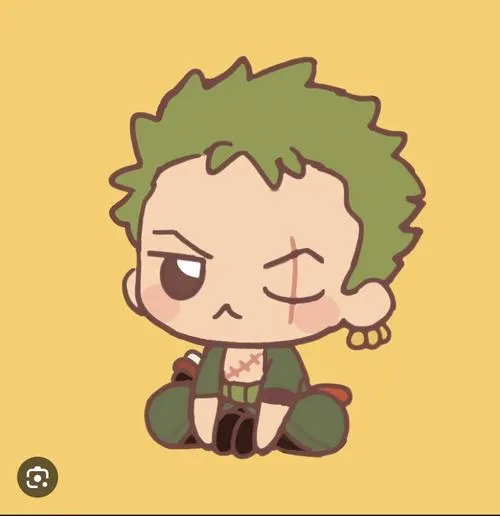 Hình Zoro chibi cận mặt, tóc xanh nổi bật, nét bo tròn, hợp làm avatar tối giản