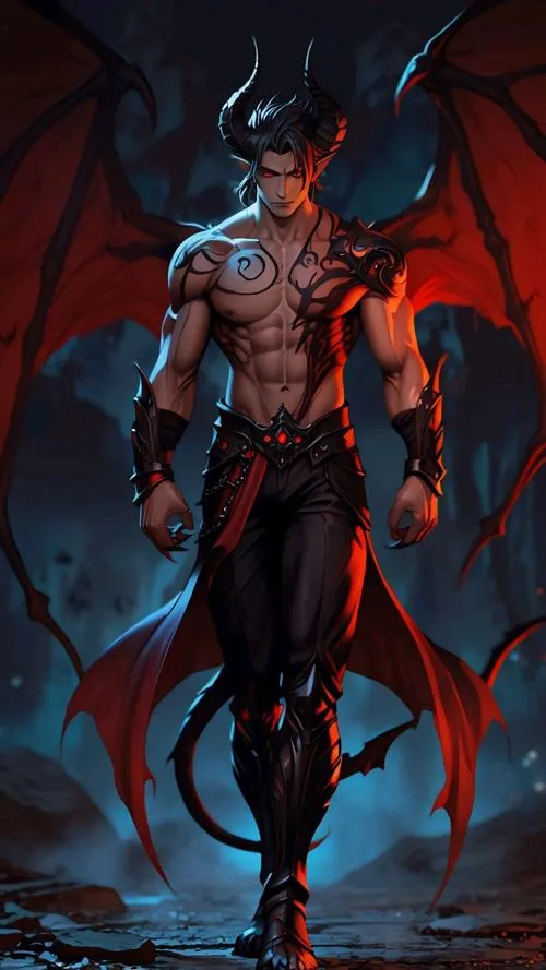 Nếu bóng tối có gương mặt, nó thường sẽ giống một nhân vật trong hình ác quỷ nam anime ngầu. Vẻ đẹp nửa thật nửa ảo, nụ cười như biết trước bí mật của người đối diện. Ánh sáng viền mỏng ôm lấy sừng và cánh, tạo cảm giác nhân vật vừa bước ra khỏi một lời nguyền. Nhìn càng lâu càng bị kéo vào cái không gian u minh, yên mà rợn.