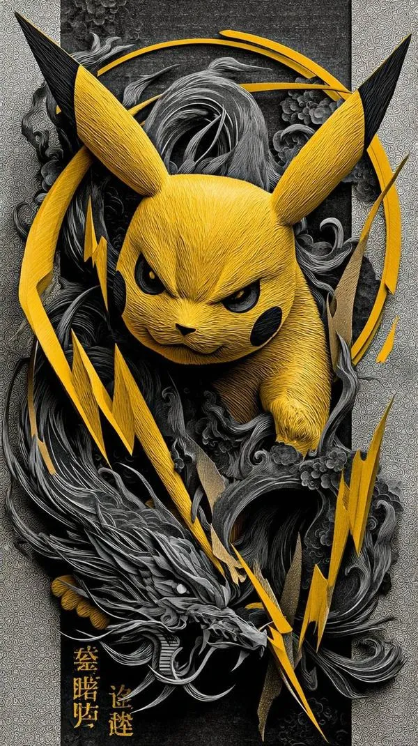 Hình nền điện thoại Pikachu phong cách graffiti, ánh viền vàng nổi khối, nền xám đậm tạo chiều sâu mạnh.