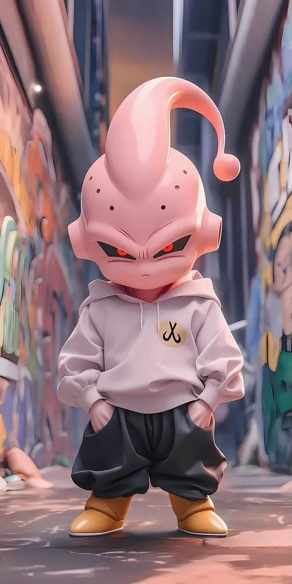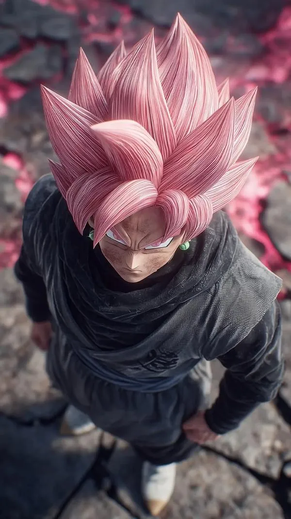 Android 18 mặc đồ hồng, ánh sáng đều và màu pastel, bố cục gọn hợp màn hình dọc.