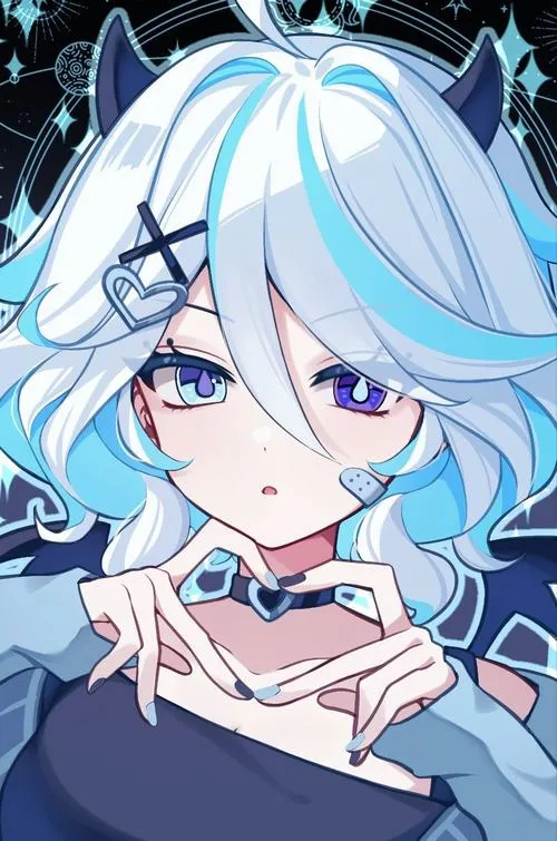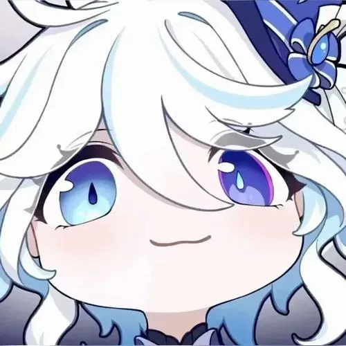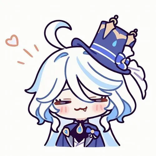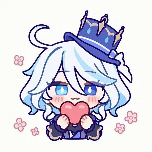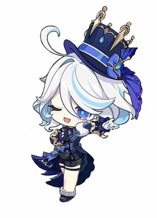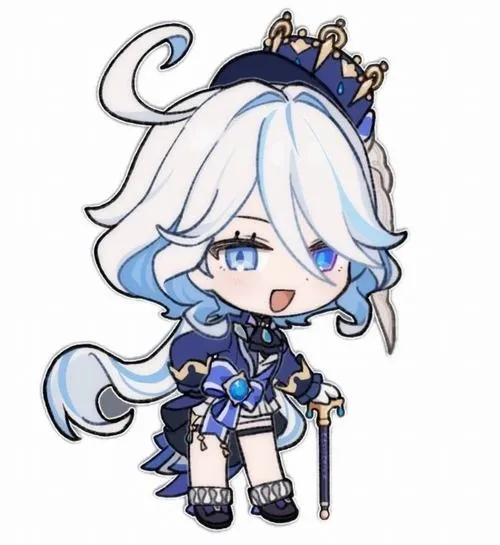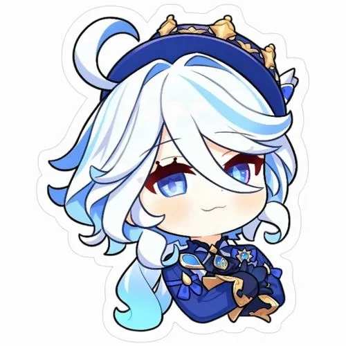 Hình Furina đầu to dễ thương, viền mảnh, chuyển sắc nhẹ, hợp gu tối giản hiện đại.
