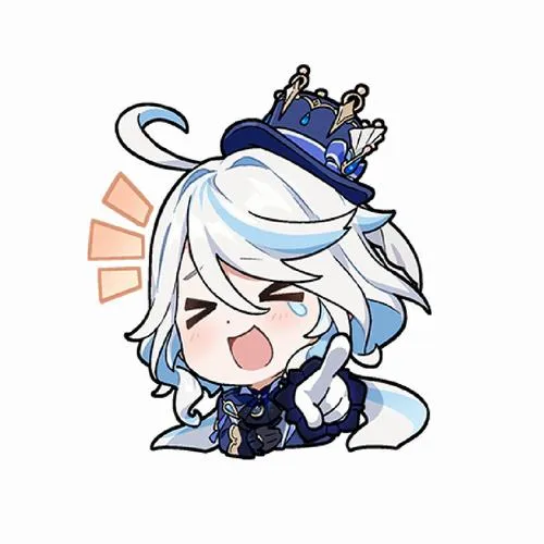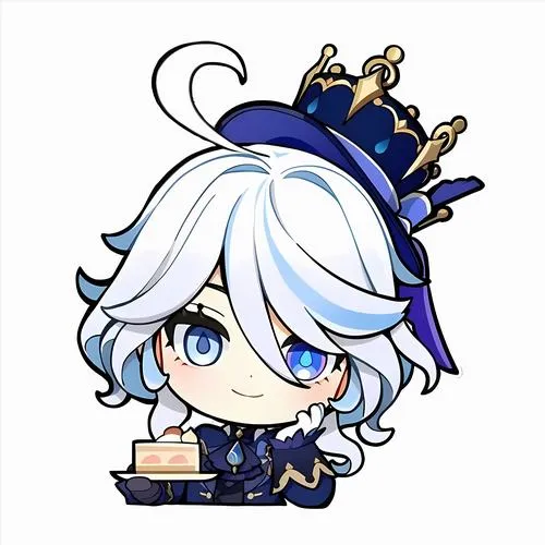 Minh hoạ Furina đáng yêu cho sticker, biểu cảm đa dạng, má hồng rõ, nét viền sạch.