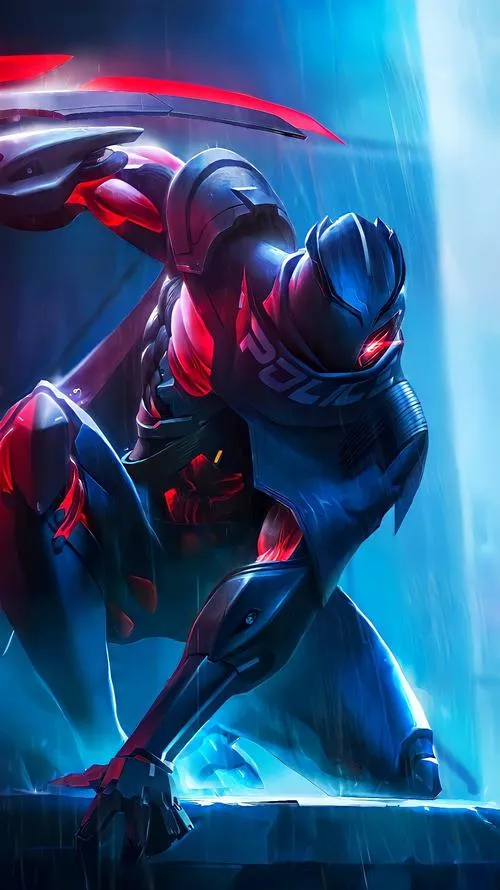Ảnh 4K Aoi chi tiết dây móc rõ, nền tối, điểm nhấn ở mắt và vũ khí, hợp màn hình khóa.