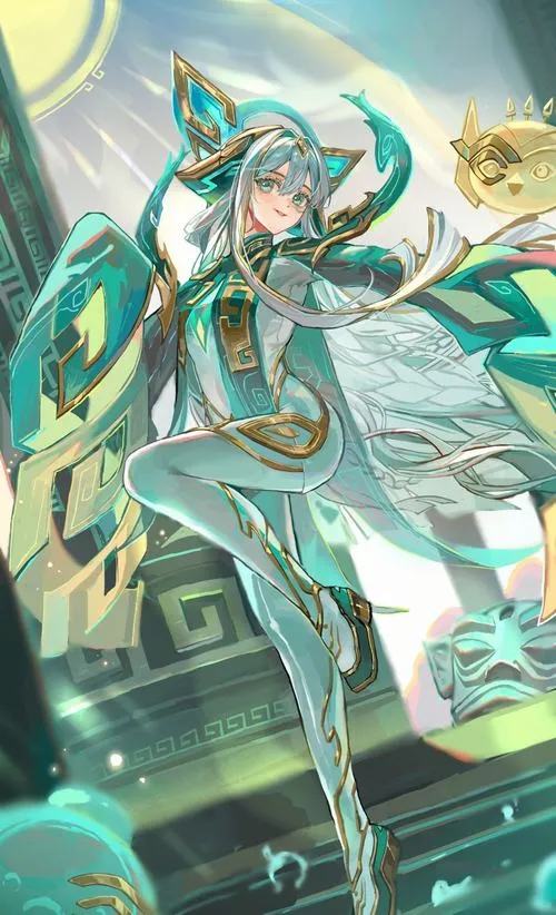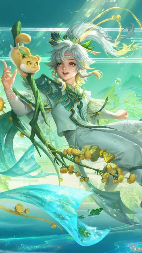 Hình nền anime Yue tông xanh ngọc, nền trơn, ánh sáng mảnh, cảm giác nhẹ và tinh.