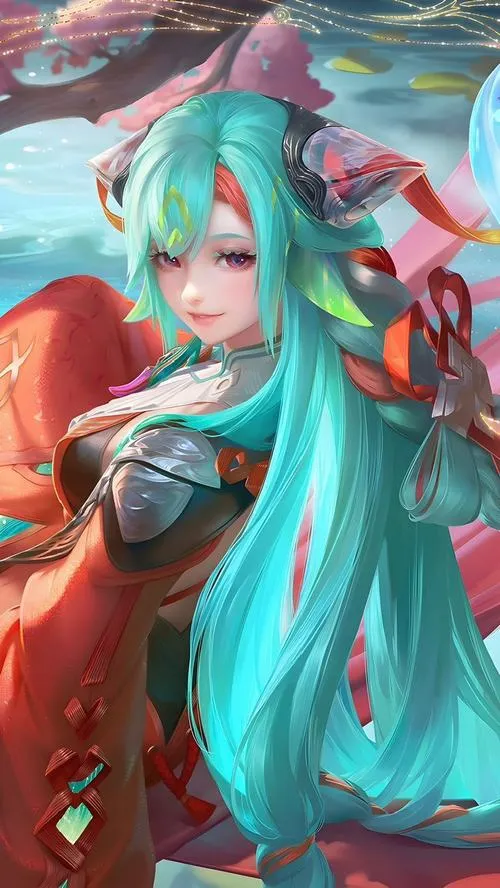 Hình nền anime Diao Chan tông xanh ngọc, nền trơn, hiệu ứng băng nhẹ, nhìn dịu.