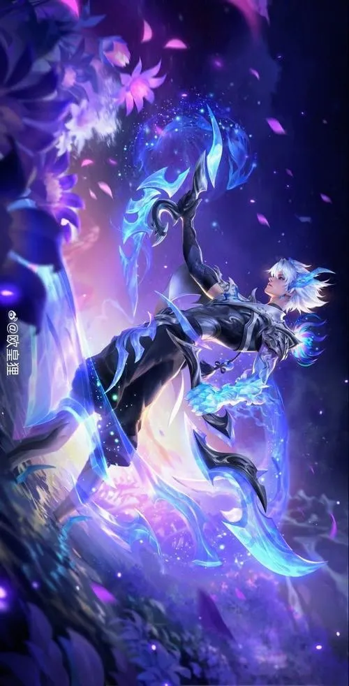 Hình nền Liên Quân Keera nền tối sâu, ánh tím xanh quanh móng, bố cục dọc 9:16 chuẩn.