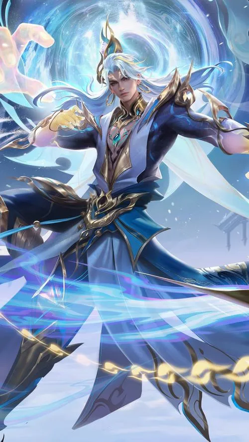 Hình nền Liên Quân Xeniel ánh sáng trắng xanh, cánh mở rộng, nền mờ sạch, hợp màn hình khóa.