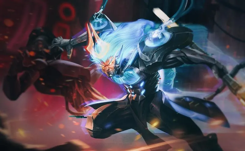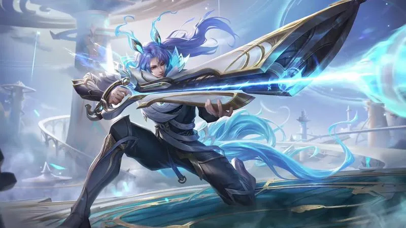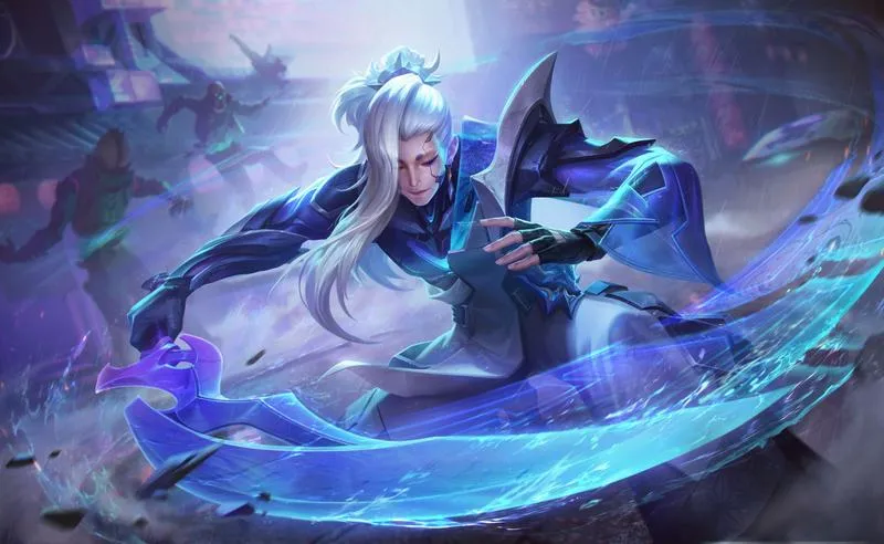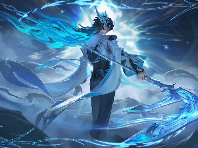 Nakroth lướt cắt tông xanh điện vệt chém sắc gọn tương phản cao hợp màn hình khóa