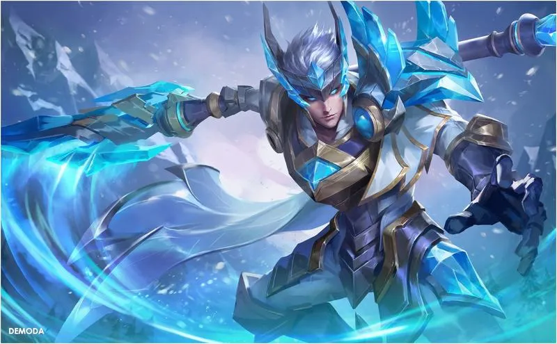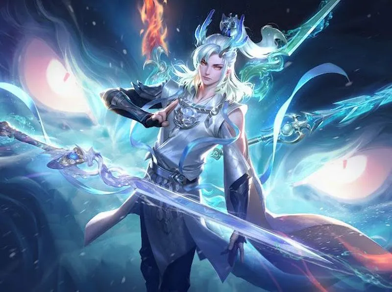 Richter giáp băng xanh ngọc cầm kiếm dài nền lạnh hiệu ứng chiêu mịn và sắc