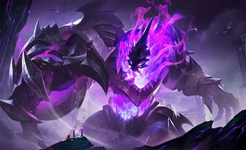 Chaugnar bùng khói tím quanh thân chi tiết giáp dày nền mờ tạo cảm giác trâu bò và uy lực