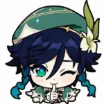 Hình Luffy cute chống cằm cười tươi, tông ấm dễ chịu, nhìn gần thấy má hồng nhẹ.