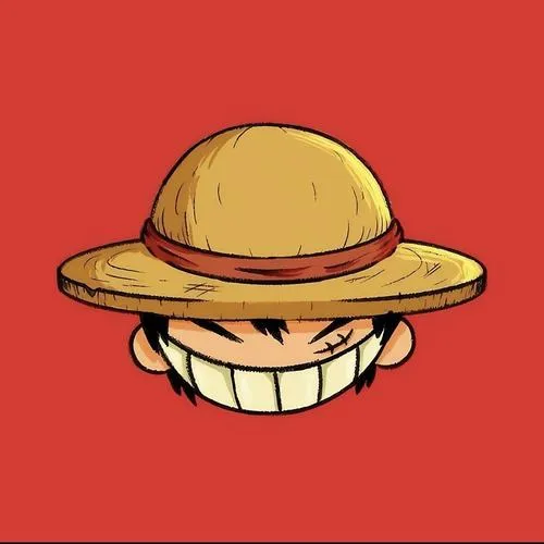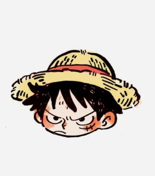 Avatar Luffy chibi mặt tròn mắt siêu to, miệng cười nhỏ, tông màu sạch như sticker.