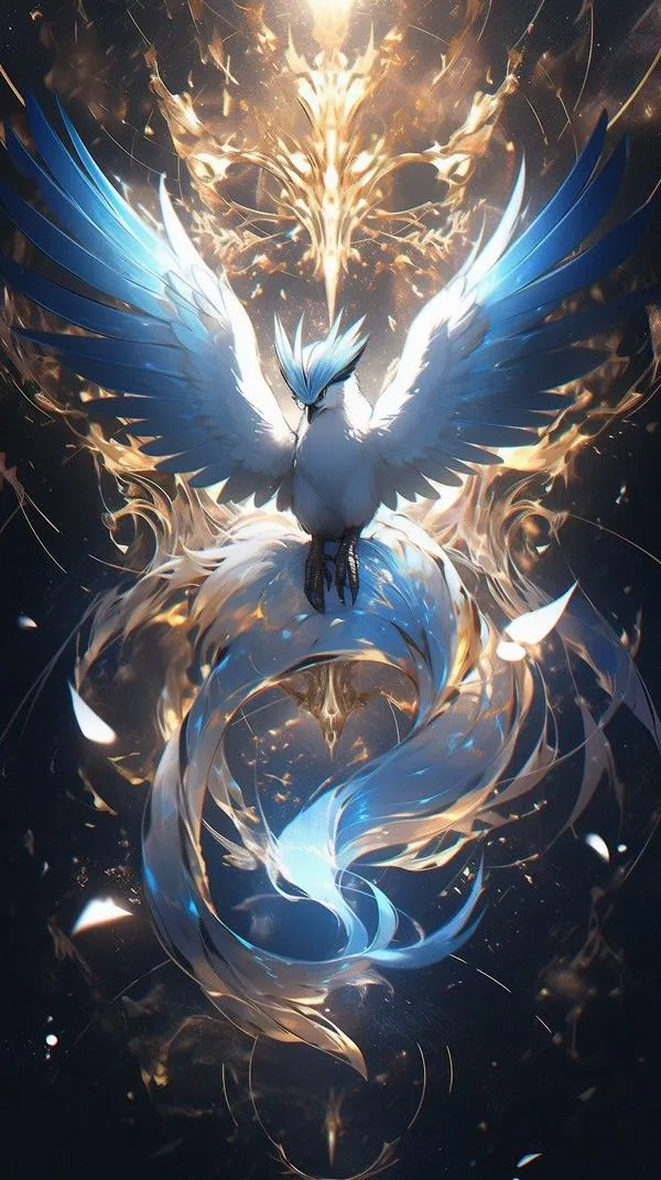 Hình nền điện thoại Lugia ánh vàng xanh, nền vũ trụ xoáy, cảm giác thiêng liêng và hiếm có.