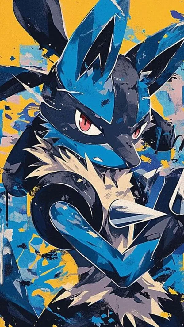 Lucario tạo dáng chiến đấu, mảng màu xanh đậm, đường nét sắc khiến icon dễ nhìn hơn.