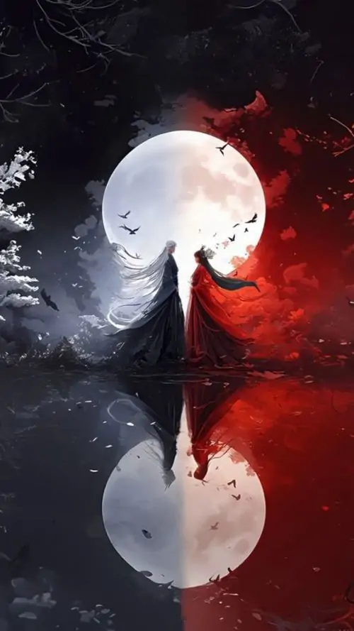 Ảnh avatar tạo hình hai bóng đen trắng quấn lấy nhau như dòng nước, đầu cúi gần chạm và đuôi xoáy tròn thành một vòng khiến tổng thể gợi liên tưởng song hành rất mạnh