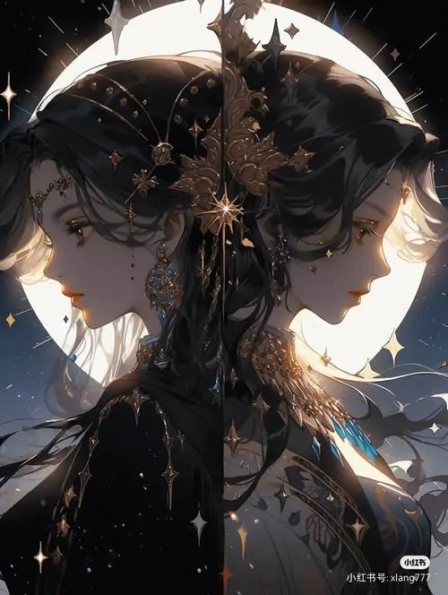 Ảnh đại diện hai nhân vật khoác trang phục dài ánh kim và đen bạc, mũ trùm rủ thấp cùng thế đứng nghiêng nhẹ tạo cảm giác trang nghiêm, hợp với người mê ảnh cô nàng Song Tử hoạt hình kiểu huyền ảo