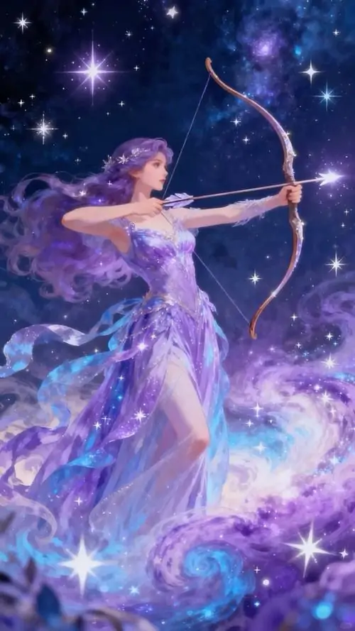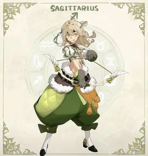 Một hình đại diện chibi cho cô gái cung lửa đang tập bắn vào bảng giấy ở sân sau, nhưng mũi tên chỉ gắn hoa cúc và chuông nhỏ nên tổng thể nghiêng về vui mắt hơn là quyết liệt