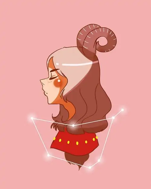Nét vẽ mảnh của khuôn mặt nữ hòa cùng cặp sừng vàng uốn cong, toàn bộ bố cục trắng kem khiến đây giống một biểu tượng chiêm tinh đơn giản mà nhìn vẫn rất đẹp