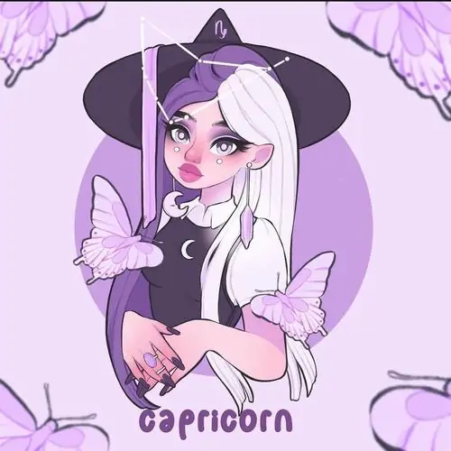 Tấm ảnh dáng dọc chân dung cô gái tóc nâu khói nhìn thẳng, môi đỏ nhẹ và chữ Capricorn phía dưới giúp ảnh thành lựa chọn ảnh đại diện gọn đẹp cho người mê tông lạnh