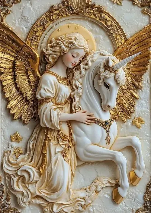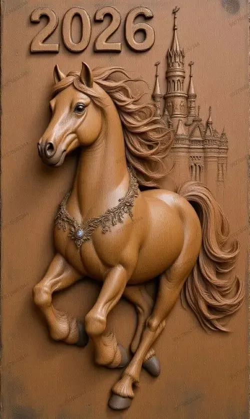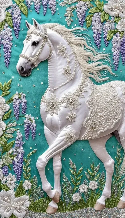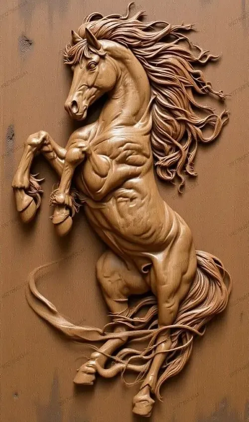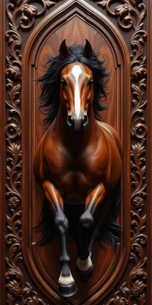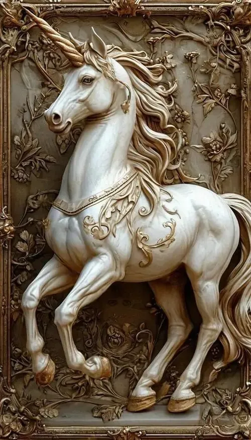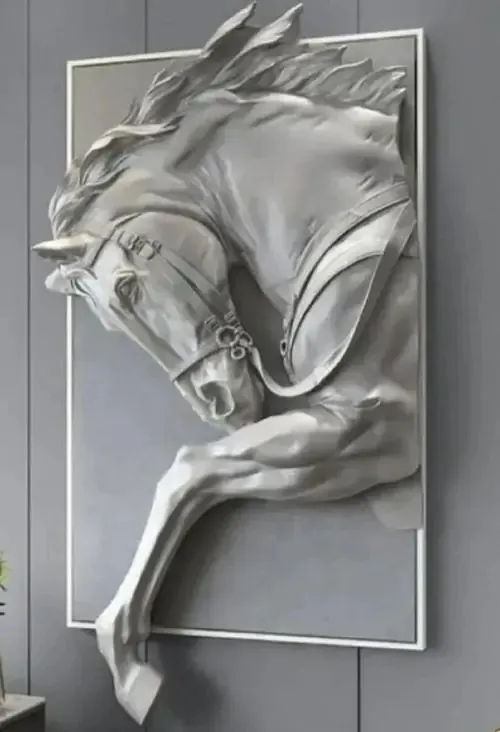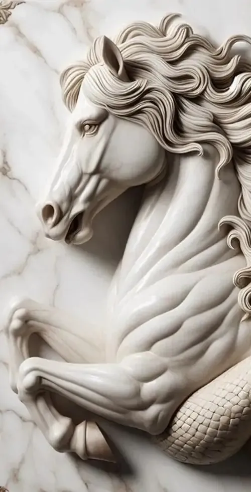 Bức phù điêu con ngựa trắng đứng giữa rừng hoa nở rộ với các đường nét chạm trổ nổi khối rõ rệt giúp không gian số của bạn trở nên sinh động và thơ mộng.