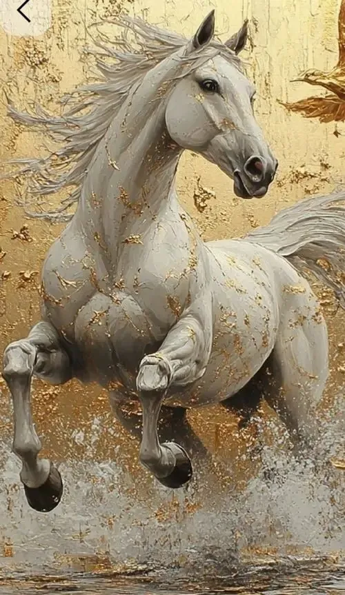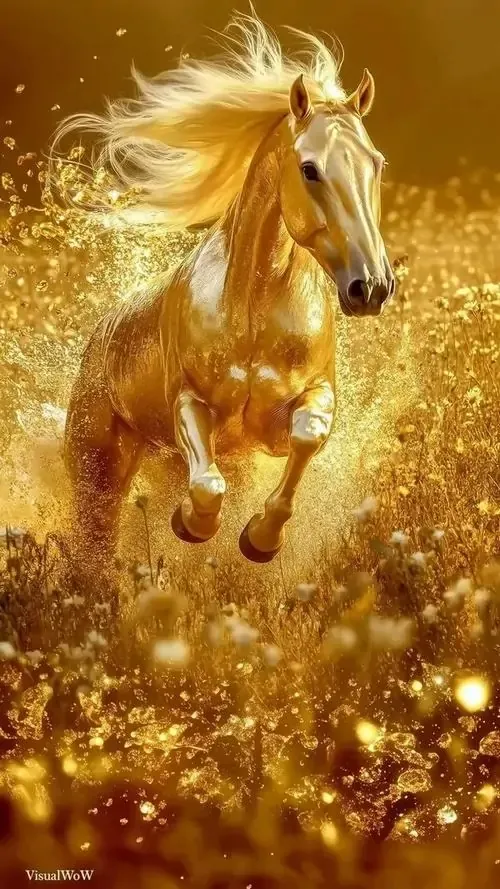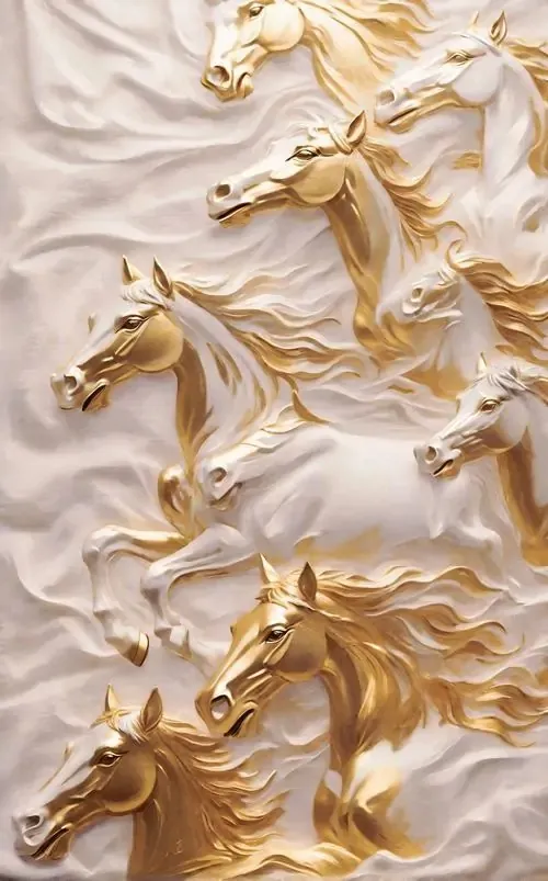 Hình nền điện thoại ghi lại cảnh đàn ngựa vàng đang phi nước đại vượt ra khỏi bức tường trắng mang lại cảm giác năng động và tràn đầy sinh khí cho ngày mới.