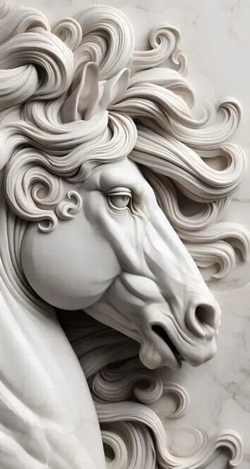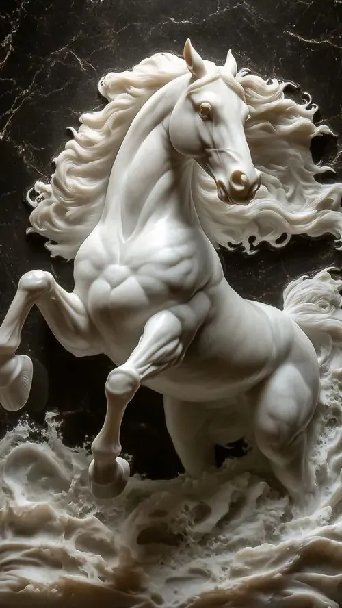 Ảnh nền đt Iphone cận cảnh đầu ngựa trắng với phần lông bờm tung bay tựa sóng biển khiến bức tượng đá như đang chuyển động thực sự trước mắt người xem rất chân thực.