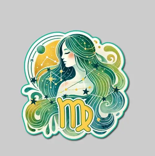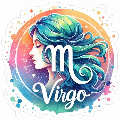 Ảnh anime biểu tượng Virgo trắng nằm giữa mảng màu xoáy xanh hồng, khuôn mặt thiếu nữ ghép vào mái tóc như nước chảy tạo cảm giác tranh số rất đẹp và nổi bật trên nền sáng