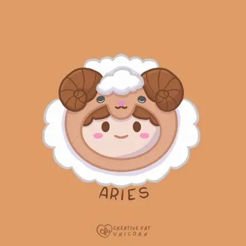 Ảnh hoạt hình chú cừu nhỏ ngồi trong khung tròn nâu be, tay ôm chân và nét vẽ đơn giản làm ảnh Aries này hợp người thích phong cách nhật ký xinh xắn