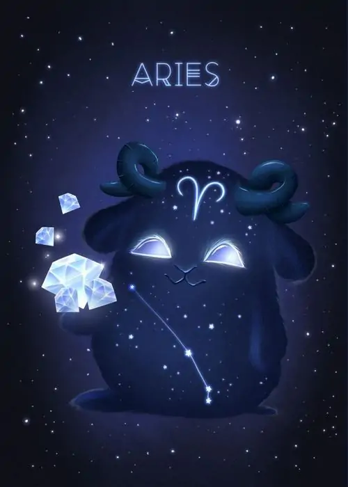 Biểu tượng chú cừu trắng viền hồng nằm trong huy hiệu tròn nhiều sao, má phồng nhẹ và chữ Aries bên dưới làm bức này hợp làm ảnh avatar cute
