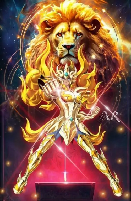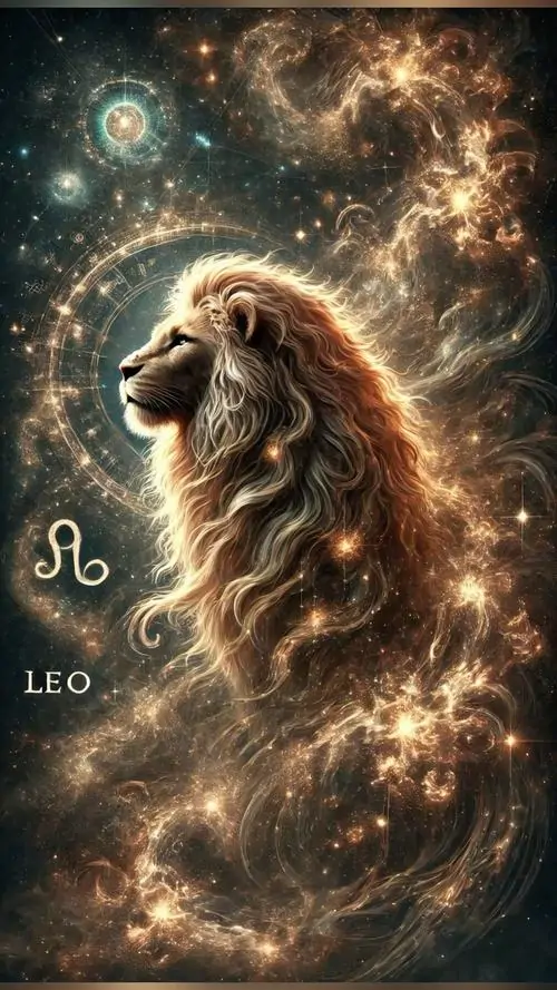 Con sư tử phát sáng giữa nền sao bụi vũ trụ, thân quay nghiêng như đang bước chậm, không có nhân vật nữ nhưng vẫn rất đúng tinh thần hoàng đạo Leo và làm hình nền khá ngầu