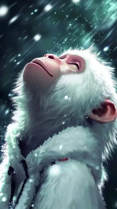 Khỉ mặc áo bào trắng ngồi cạnh thác nước, bàn tay đặt lên đầu gối và mắt nhìn xa rất thư thái, ảnh đại diện tuổi khỉ này tạo cảm giác nhẹ lòng và hợp tuổi