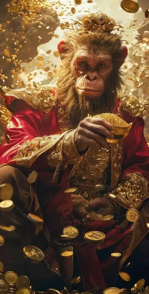 Khung hình chụp cận đôi mắt tinh anh của linh vật khỉ đang ôm đồng tiền cổ, sắc trắng bạc lên rất rõ, ảnh đại diện tuổi khỉ hợp người cần thêm tài lộc