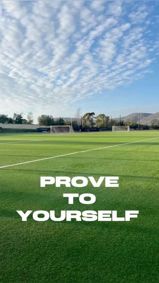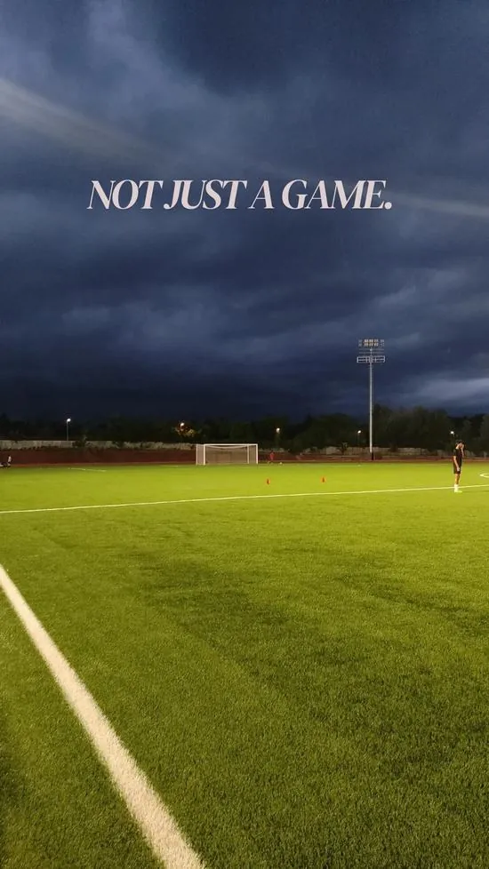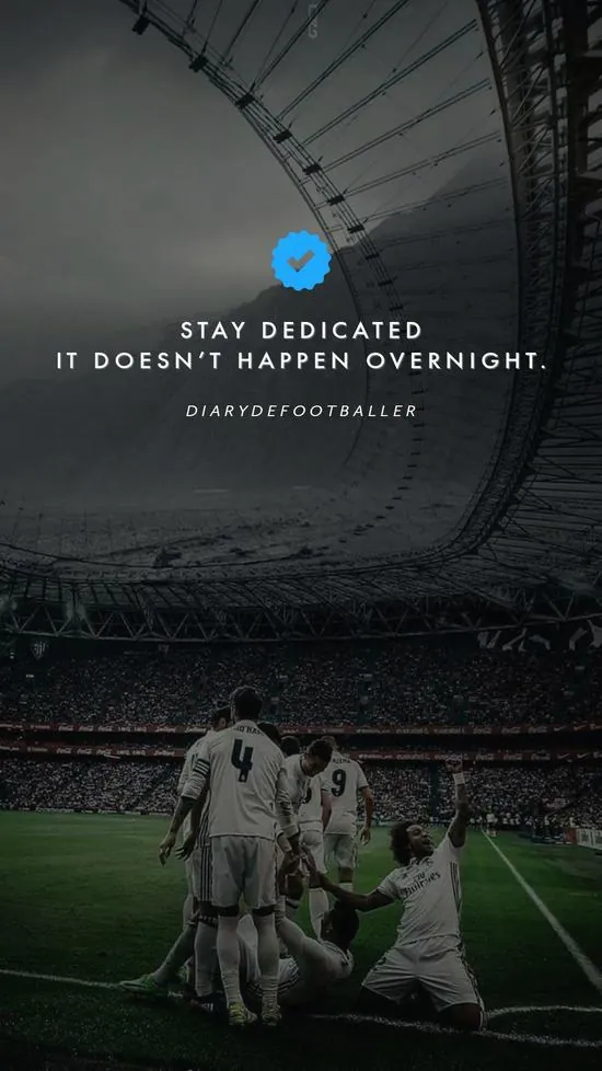 Dòng chữ động lực trải dài trên nền cỏ xanh thẳm làm hiện rõ vạch vôi khung thành trắng xóa trong một buổi chiều hoàng hôn tĩnh lặng và đầy sâu lắng.