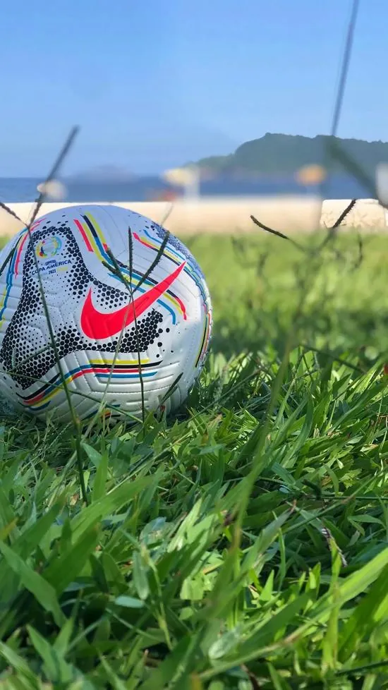 Quả bóng nằm yên bình trên thảm cỏ xanh bên bờ biển rì rào sóng vỗ tạo nên một bố cục hài hòa lạ mắt cho những ai yêu thích sự bình yên.