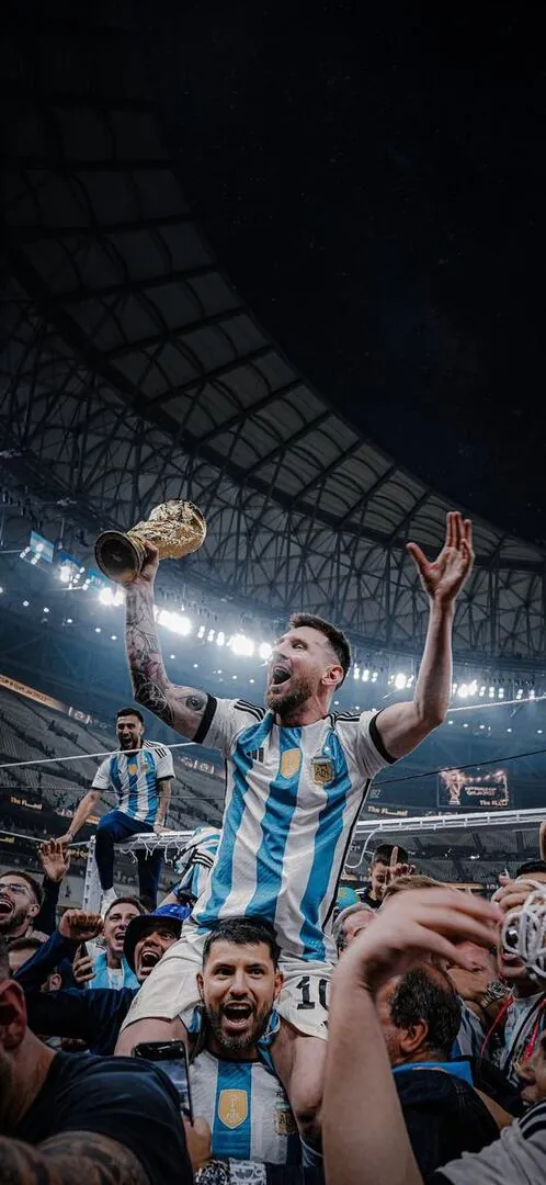 Wallpaper thể thao 4k ghi lại cảnh tượng cầu thủ được đồng đội kiệu trên vai giữa vòng vây người hâm mộ tạo nên một bố cục hài hòa và ấm áp.