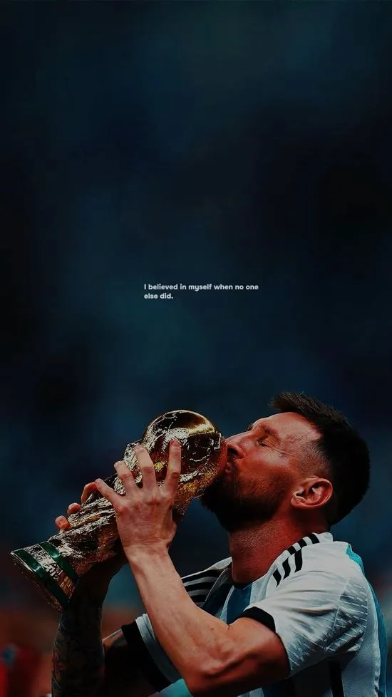Cầu thủ nâng cao chiếc cúp vàng danh giá và trao một nụ hôn nồng cháy thể hiện khoảnh khắc ghi bàn quan trọng đã mang lại vinh quang cho đội tuyển.