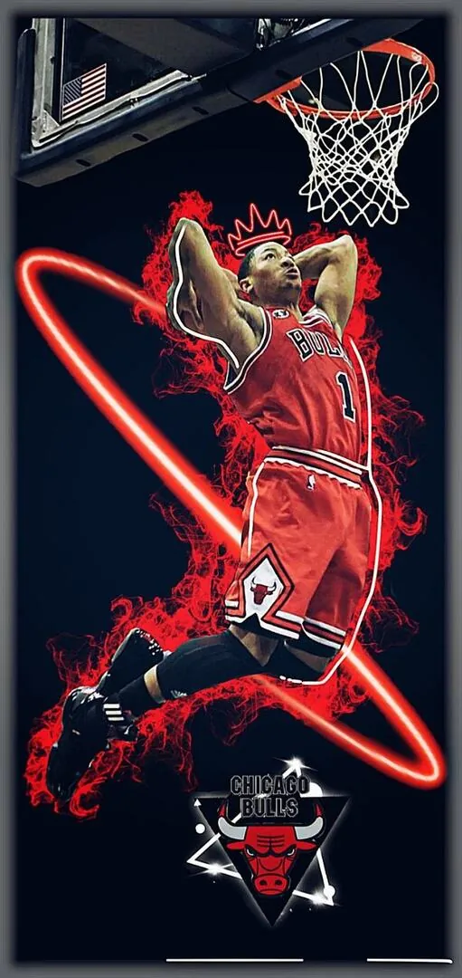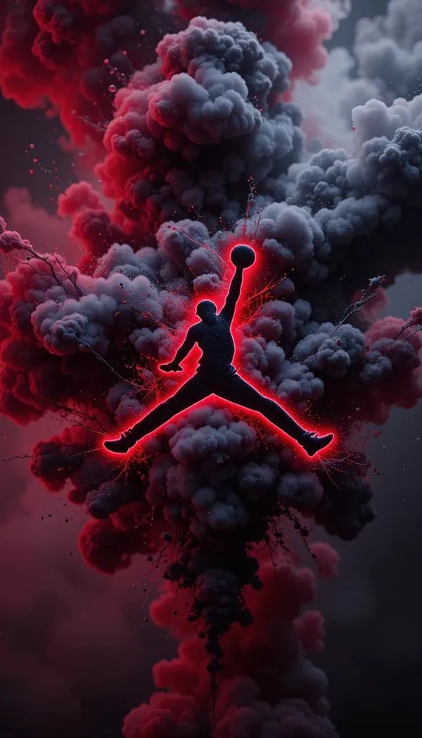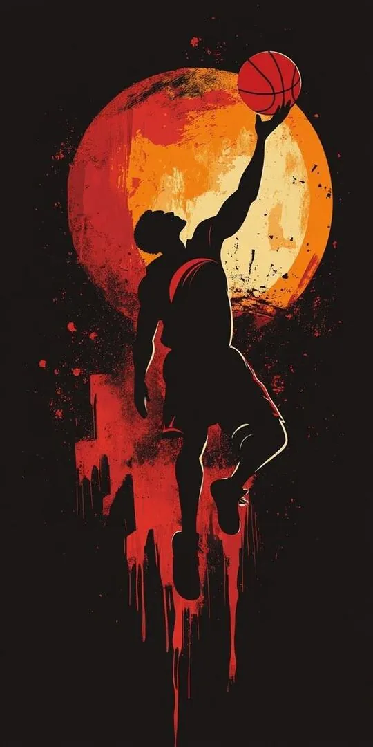 Tranh nền bóng rổ cầu thủ úp rổ giữa những đường nét neon đỏ rực bao quanh tạo nên một phong cách đồ họa hiện đại và tràn đầy năng lượng.