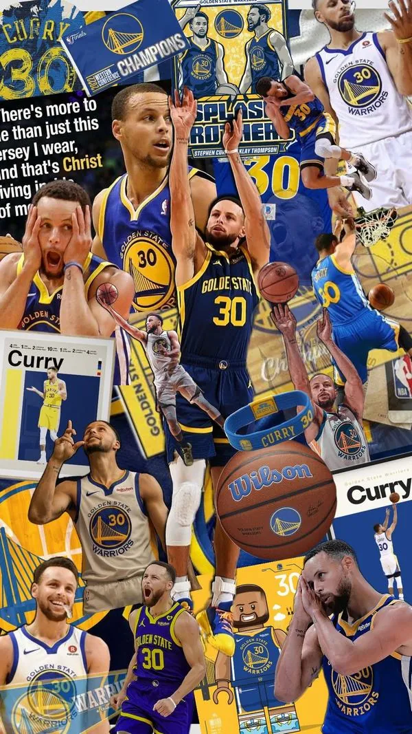 Siêu sao Stephen Curry trong màu áo xanh vàng với nụ cười chiến thắng thể hiện rõ tinh thần thi đấu phóng khoáng của một tay ném vĩ đại.