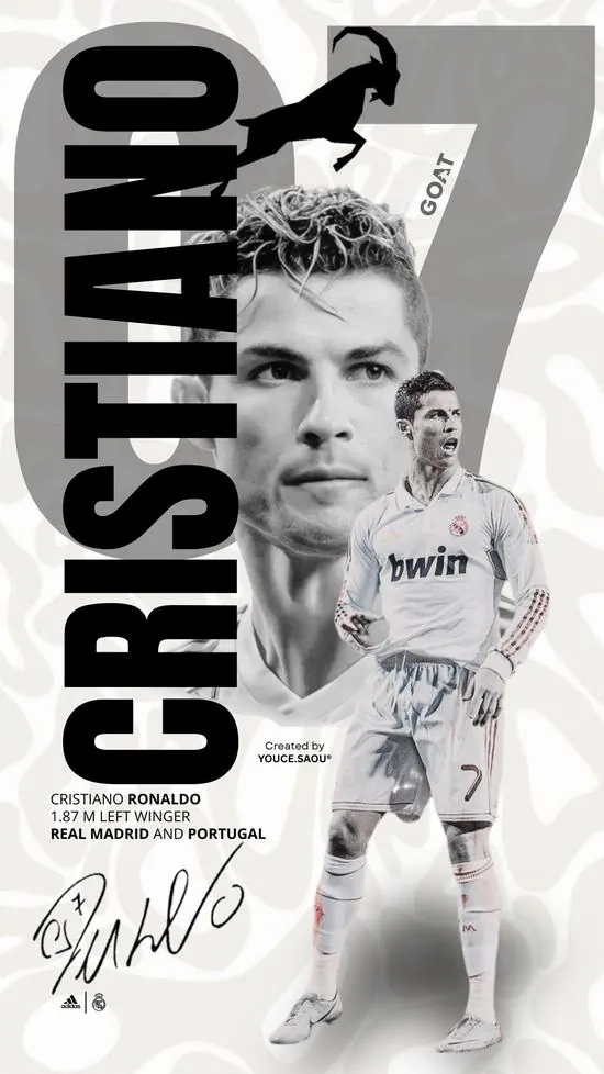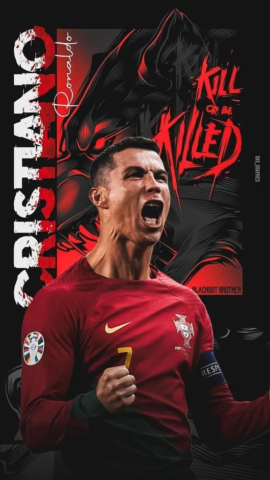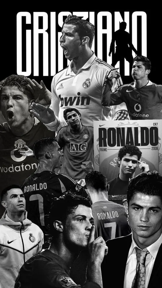Mẫu Hình nền chờ góc nghiêng sắc sảo của Ronaldo trong chiếc áo khoác đen làm bật lên vẻ phong trần và sự tập luyện bền bỉ của một siêu sao toàn cầu.