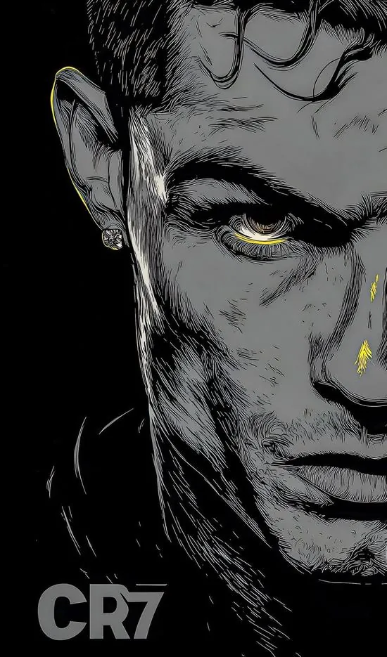 Hình đại diện đt phác họa gương mặt Ronaldo bằng những nét chì đen đậm nhạt tinh tế giúp làm rõ đôi mắt sắc sảo đầy ngạo nghễ của một sát thủ sân cỏ.
