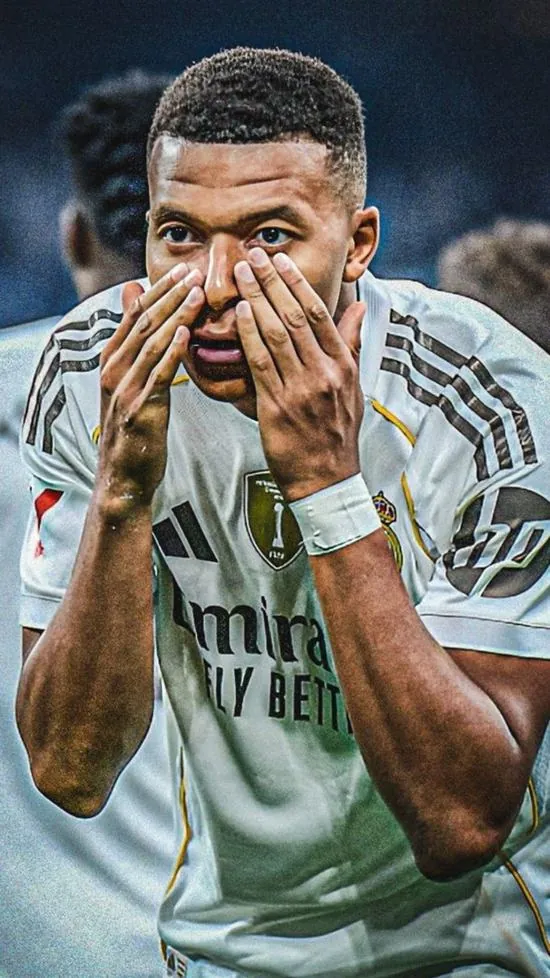 Hình nền dọc cầu thủ trong trang phục trắng đang áp tay lên má với gương mặt tập trung cao độ thể hiện rõ sự kịch tính trước khi trận đấu bắt đầu.