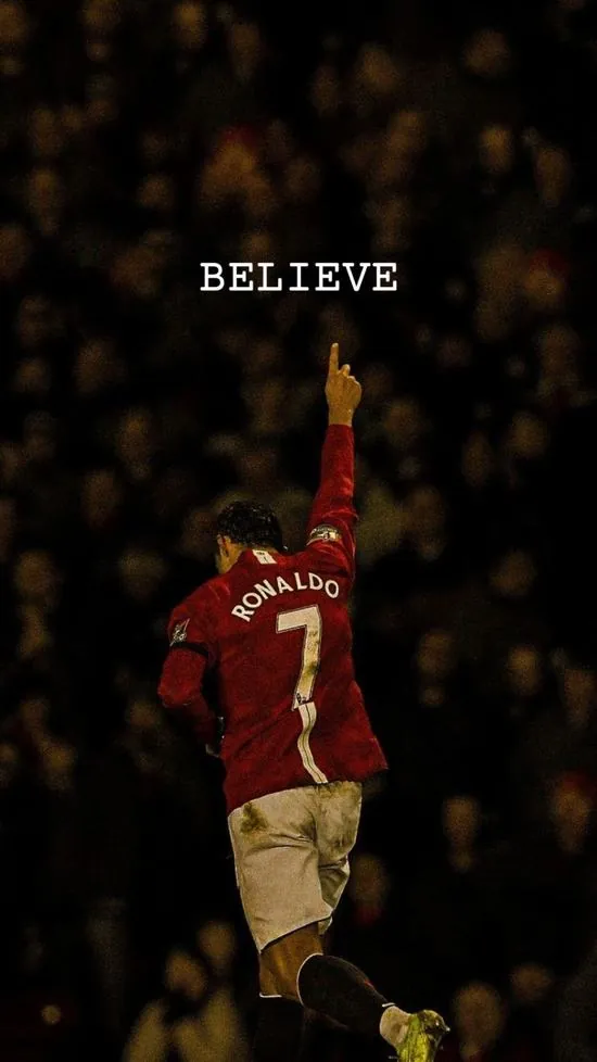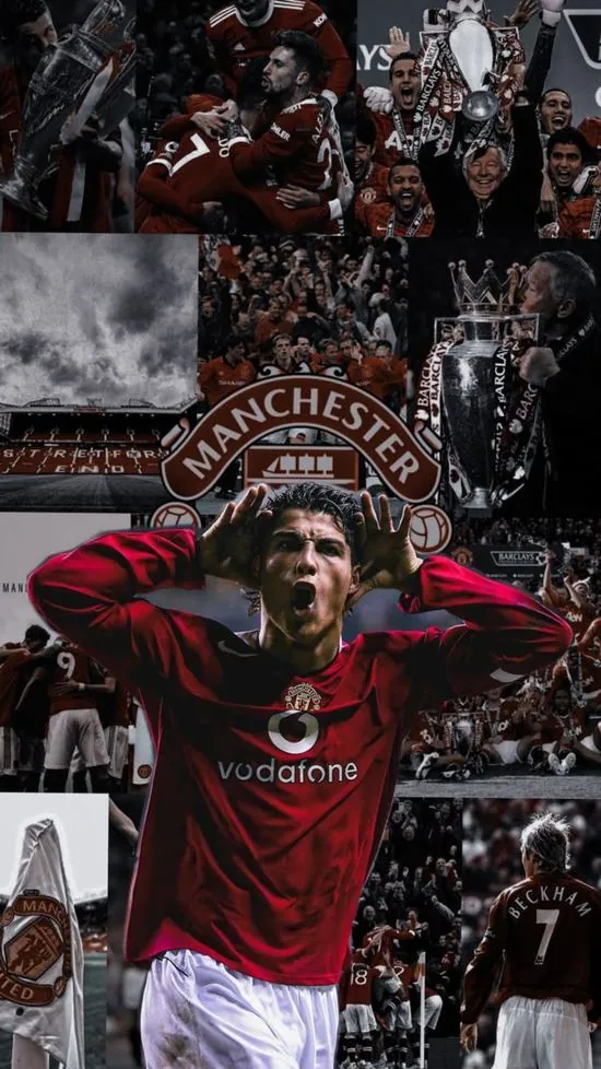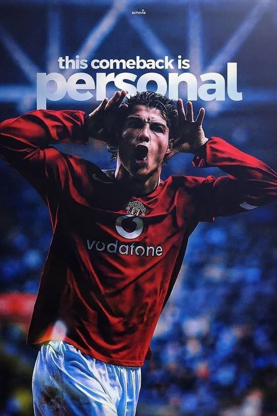 Ảnh đại diện Ronaldo trong màu áo đỏ Quỷ đỏ đang ăn mừng cuồng nhiệt giữa vòng vây người hâm mộ tạo nên khung cảnh vô cùng hào hùng và xúc động.