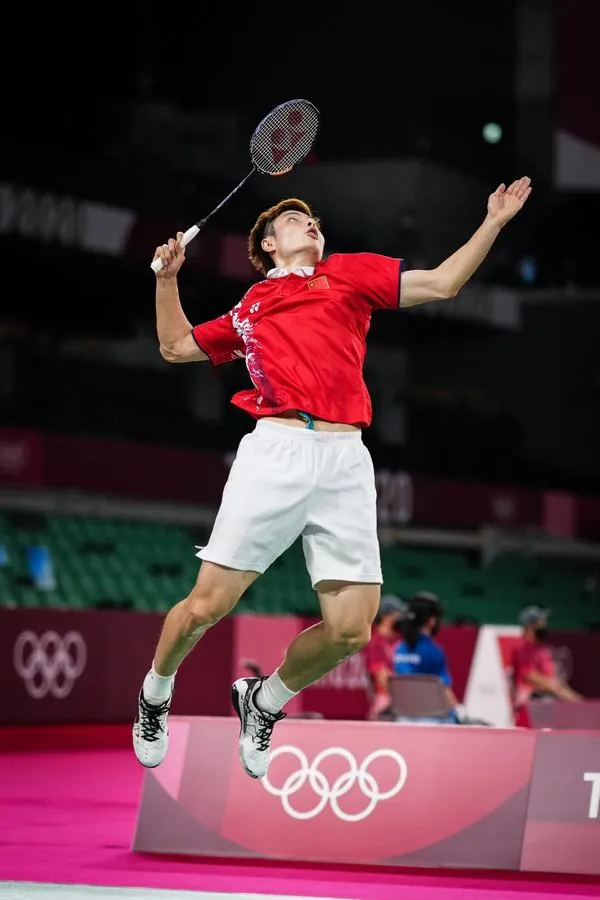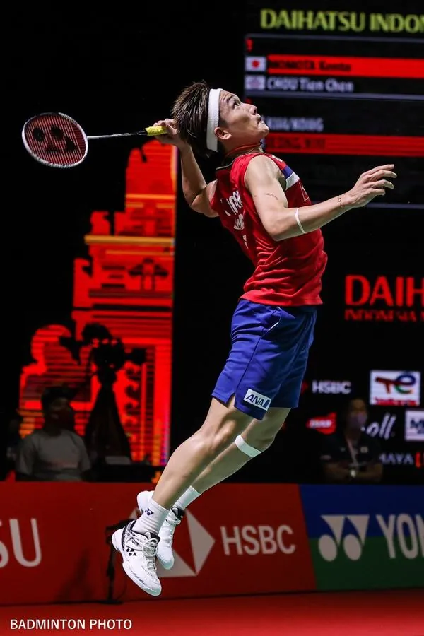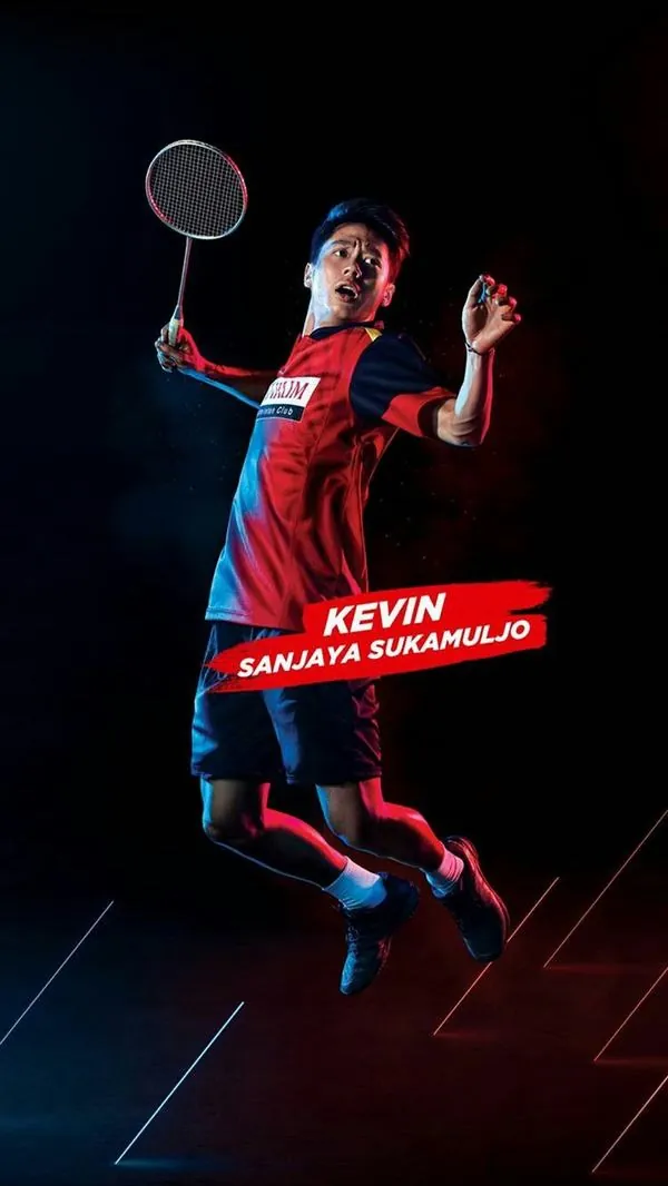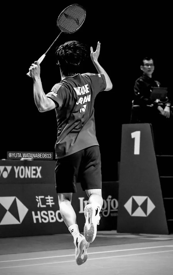 Hình nền điện thoại khắc họa chân dung Kento Momota trong tư thế chuẩn bị đầy quyết tâm với tông màu đỏ trắng rực rỡ thể hiện sức mạnh bền bỉ.